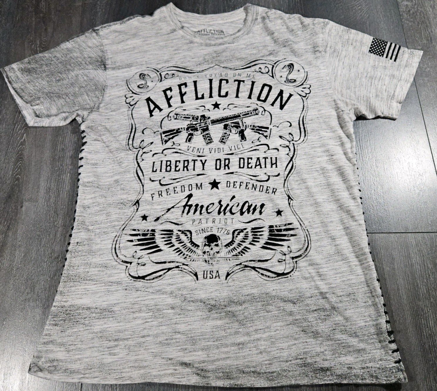 Affliction Liberty Of Death T Shirt Adult L Gray MMA Freedom Grunge Fighting