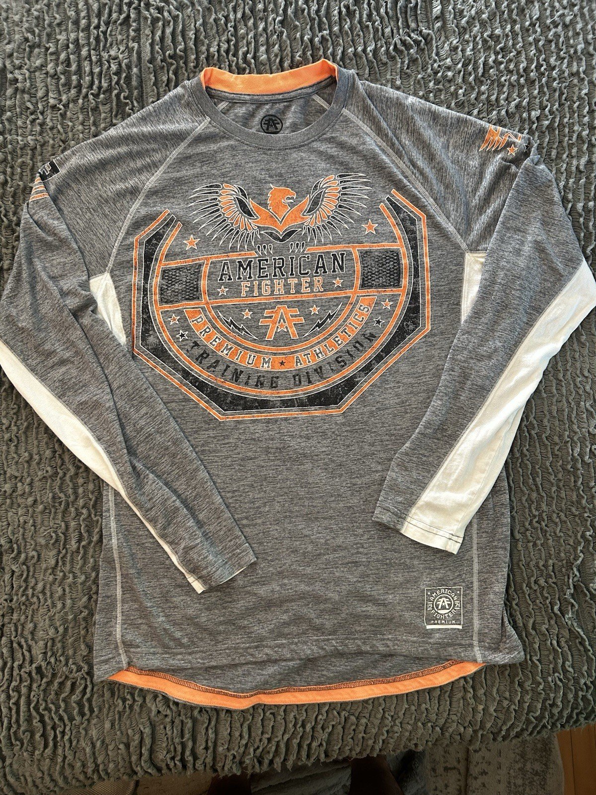 American Fighter Long Sleeve Shirt Size XL Gray & Orange American Fighter Long Sleeve Shirt Size XL Gray & OrangePrice: $24.99Condition: Pre-owned – ExcellentLocation: USShips To:American Fighter Long Sleeve Shirt Size XL Gray & Orange Buy Now