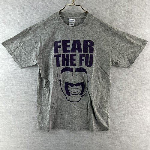 Fear The Fu Manchu Tee Shirt Gray Purple Crew Neck King Fu Sz M