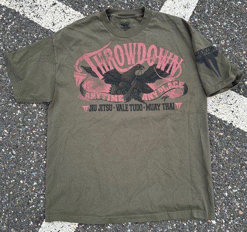 THROWDOWN JIU JITSU MMA TEE MENS XL ANY TIME ANY PLACE Green Shirt Price: $15.00 Condition: Pre-owned – Excellent Location:…