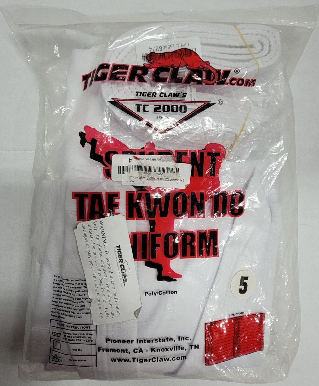 Tiger Claw TC2000 Martial Arts Uniform w/ White Belt TC 2000 Size 5, 5’8″, 175#. Price: $17.99 Condition: New with…